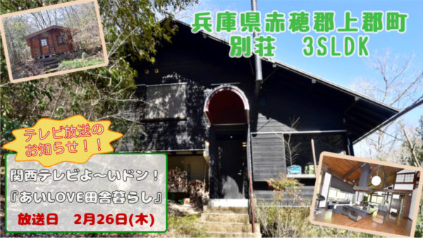 2月26日(木)に放送される関西テレビ【よ~いドン!】の『あいLOVE田舎暮らし』のコーナーにて、弊社お取り扱い物件が放送されます!