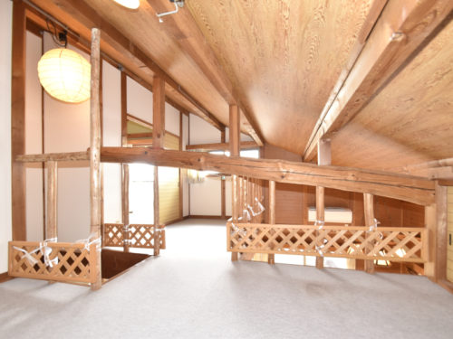 2階には洋室5.5畳と和室7.5畳の続き間、そしてロフトがあります。ロフトには吹き抜けを見下ろせるスペースや、勾配天井を活かした収納もあり、遊び心のある空間です。それぞれのお部屋にはロフト側からの出入口があり、個室としても使いやすい間取りになっています。