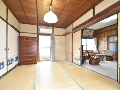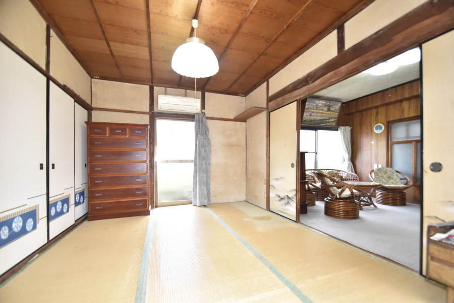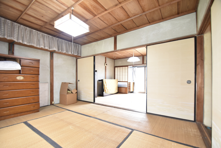 玄関を入り正面には、和室6畳2間の続き間があります。南側には縁側、東側にはDKと水回りがあり、リビングや居間にオススメのお部屋です。