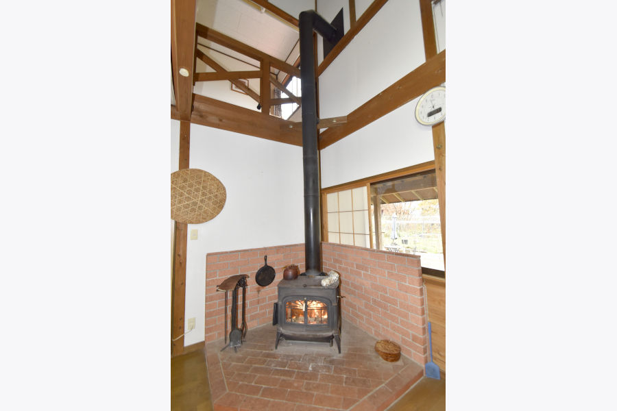 リビングは24畳で広々としています。南東の角には、薪ストーブがあり冬は身体の芯から温めてくれます。また、冬以外にはインテリアとしても楽しめますよ♪