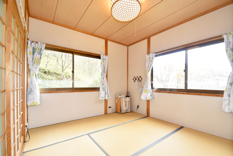 居室は1階に4.5畳の和室と、2階に12畳の洋室がございます。洋室は2ヵ所に扉があり、2部屋に分けて使うこともできますよ!