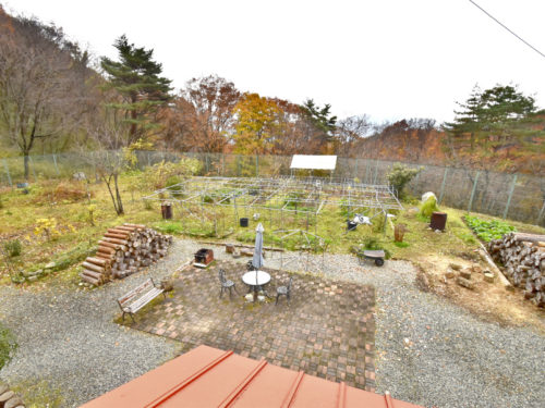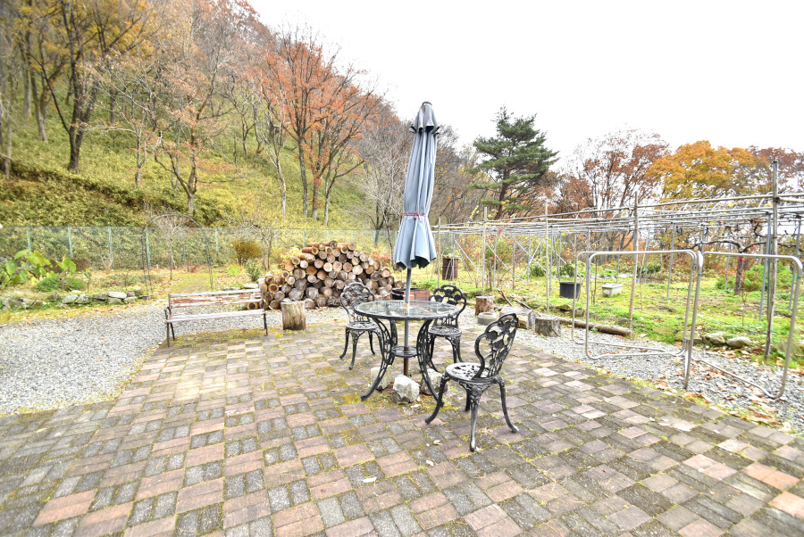 お家の前にはレンガ敷きのスペースがあり、お茶を飲んだりバーベキューをしたり、家族や仲間と憩うのにぴったりの空間ですよ。