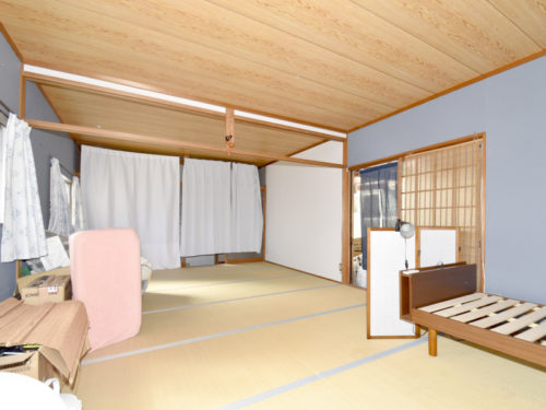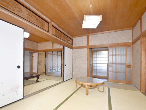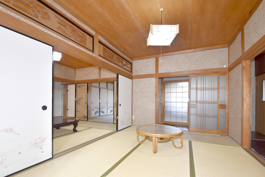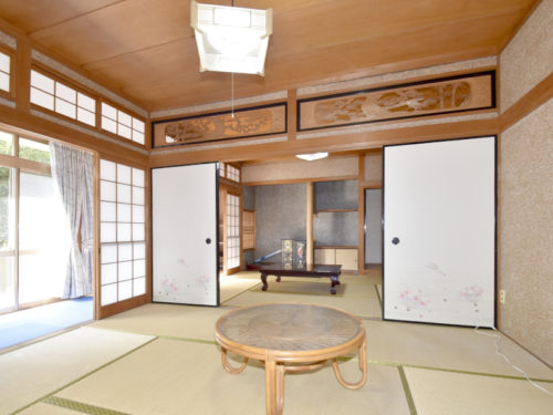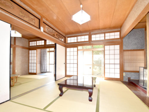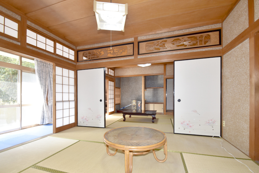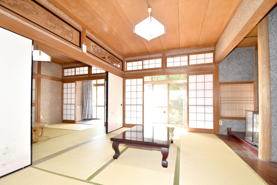 玄関を上がり左手には続き間の和室がございます。襖を開ければ大広間として使え、家族や仲間が集まる場にぴったりです☆南側には広縁があり、庭を眺めながらのんびりとくつろぐことができますよ。