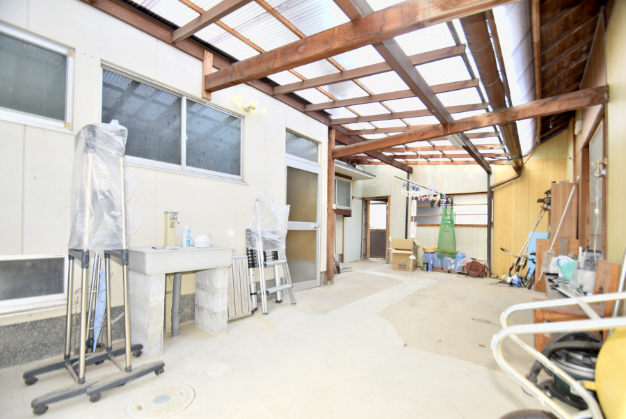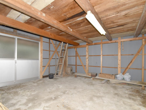 お家の西側には約8坪の物置もあり、農作業道具やアウトドア用品などたくさんの荷物を収納できますよ。