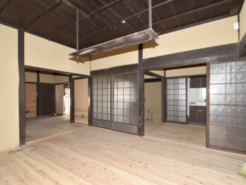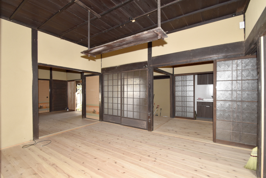 令和3年に内外装補修や門・塀の復元、水回り設備の入替、令和6年にはキッチンの新設工事が行われており、古民家ながらも生活しやすい環境が整っています。