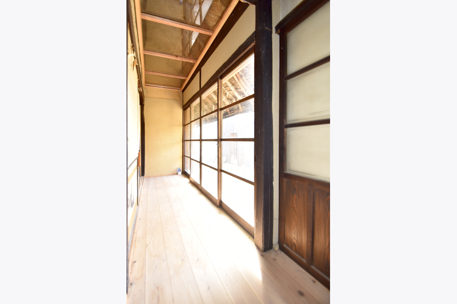 お庭を眺められる縁側は、やわらかな陽の光が差し込み、読書やお茶の時間を楽しむのにぴったり。古民家ならではの“ゆったりとした時間”が流れる空間です。