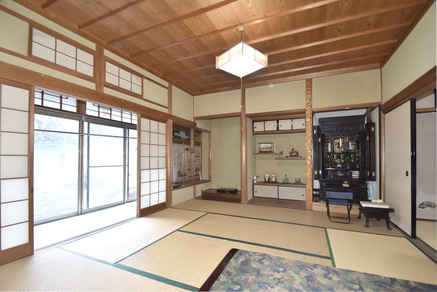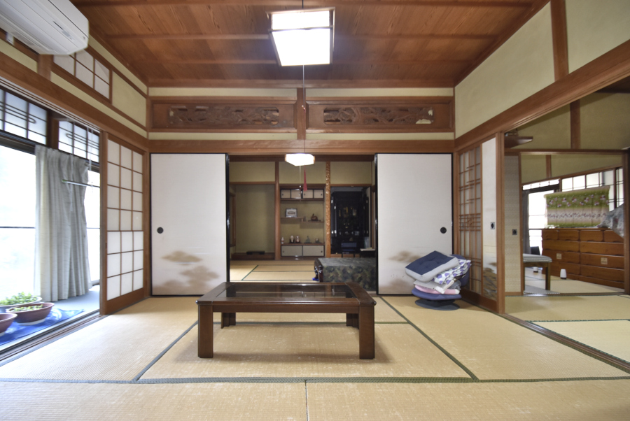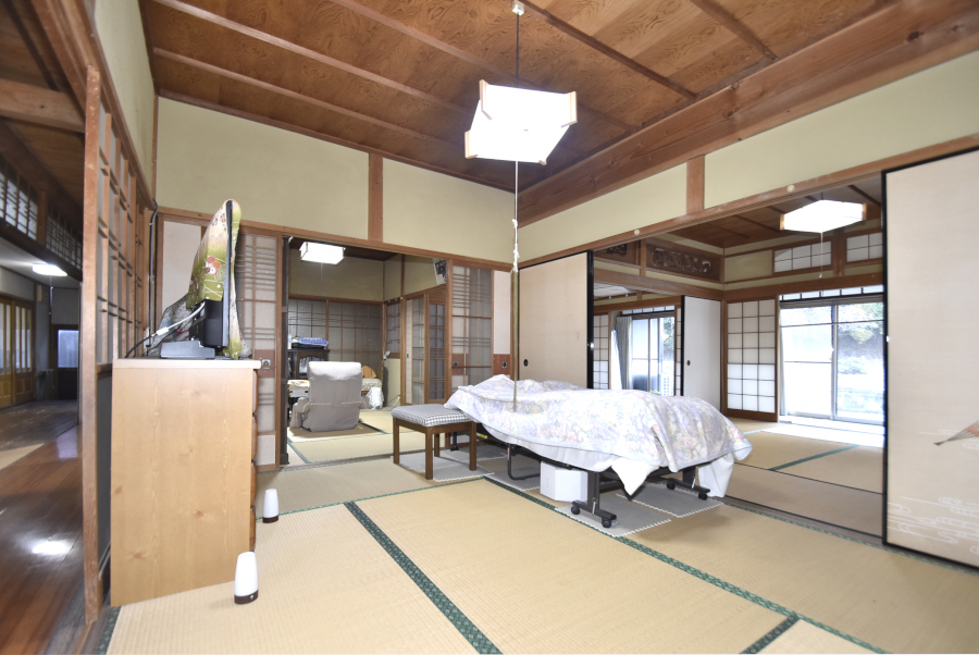 1階には、玄関左手に田の字型の和室があります。続き間として広く使ったり、個室として区切ったりと、柔軟な使い方が可能です。南向きの縁側もあり、日当たりの良い空間でのんびりとした時間を過ごせますよ。