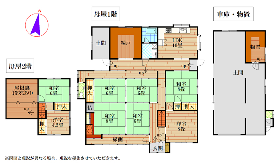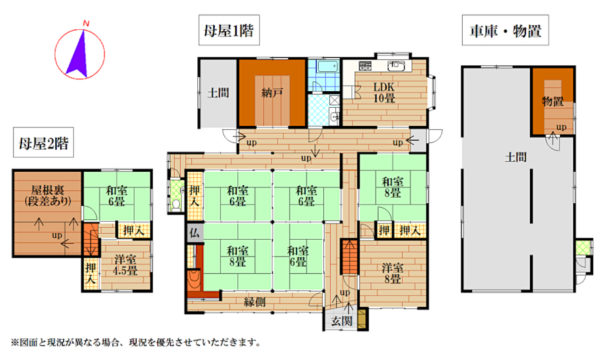 母屋の間取りは8SLDK。お部屋数が充実しており、ご家族それぞれの暮らしにゆとりをもたらしてくれます。