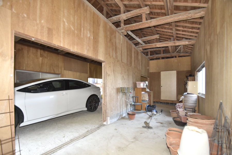 車庫・物置は母屋の東隣に建っています。