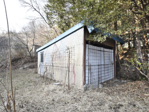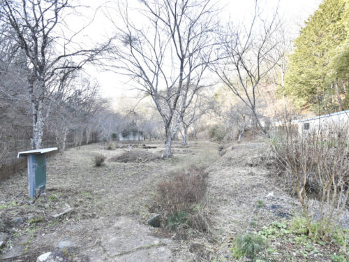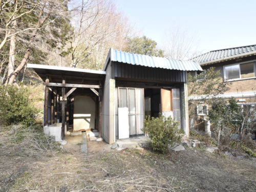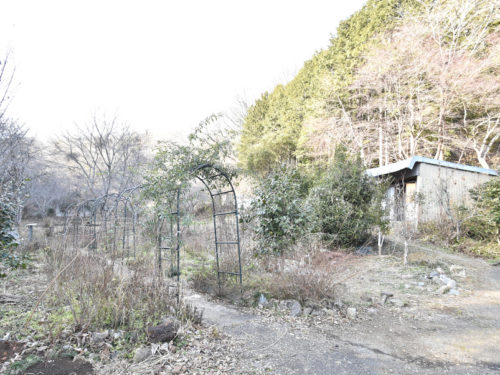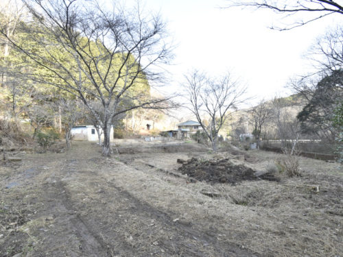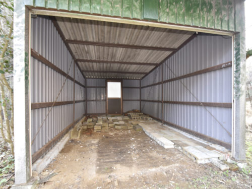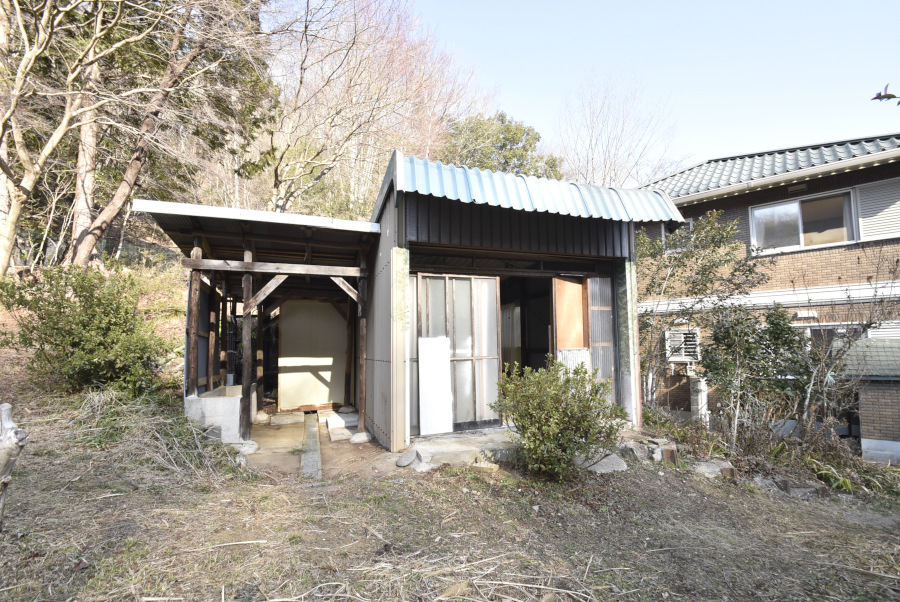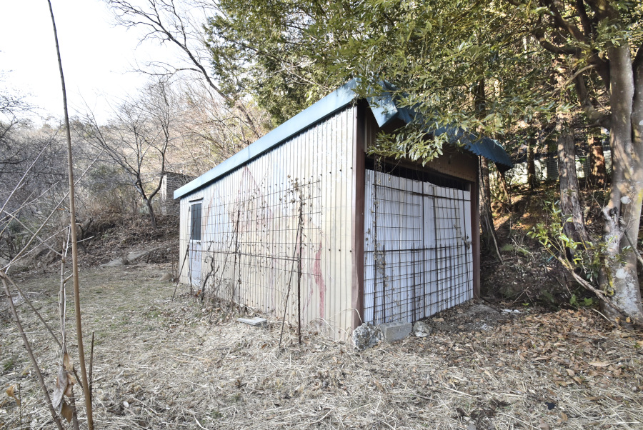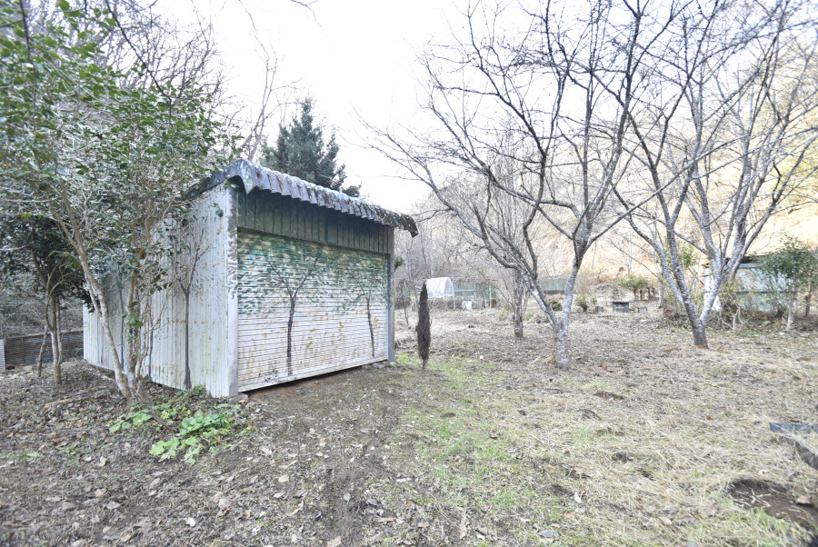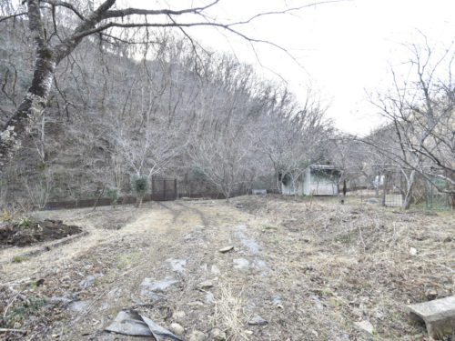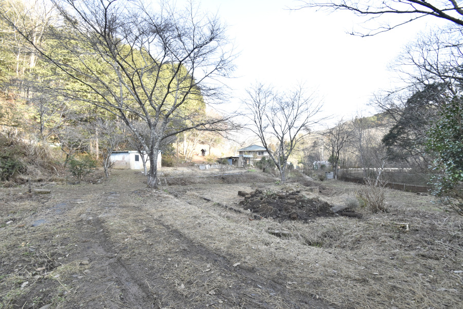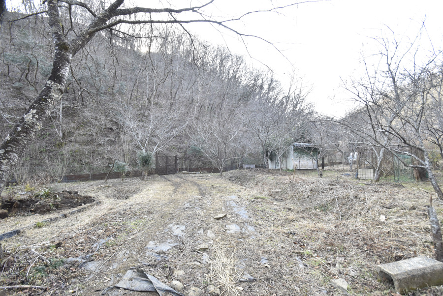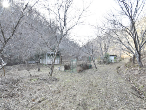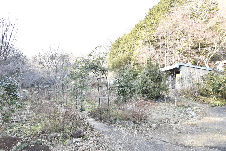 西側に進むにつれて山側へ向かってゆるやかに段が続き、棚田のような地形が広がっています。お花、お野菜、お米、果樹など、エリアを分けて栽培できますよ。複数の物置があり、農作業道具の保管にも便利です。