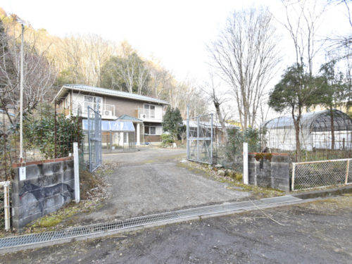 敷地は、母屋がある東側がほぼ平坦で、車で進入しやすいよう通路は舗装されています。