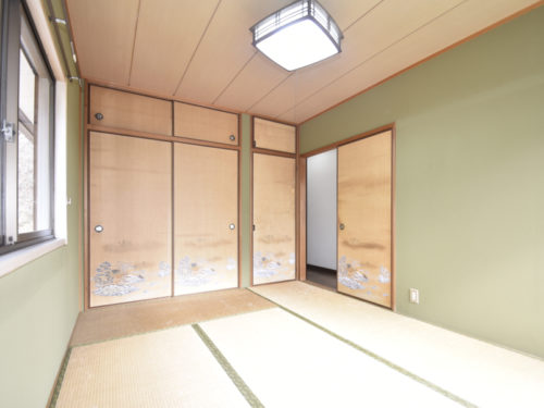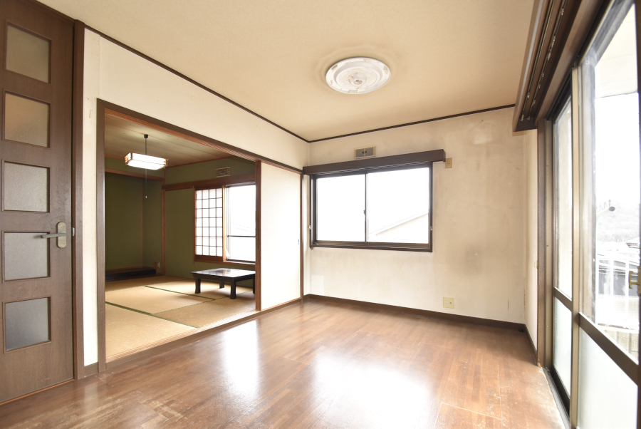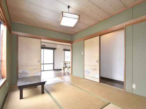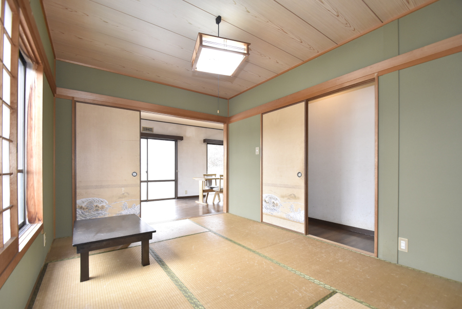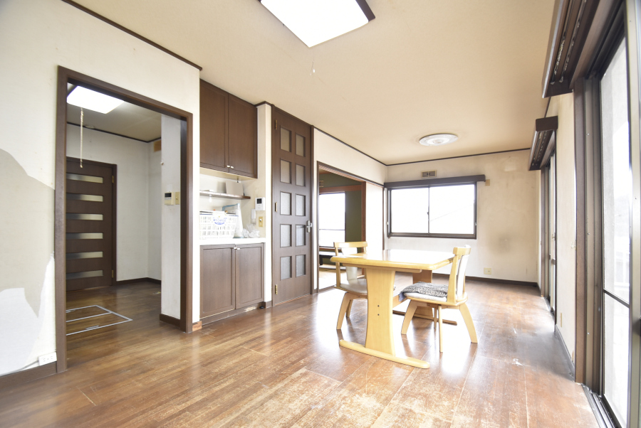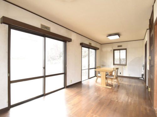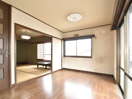 1階は、和室6畳とLDKが続き間になっています。襖を開けて広く使ったり、個室として区切ったりと、暮らし方に合わせた使い方ができますよ。リビングダイニングは南向きのお庭に面しています。日中は明るい時間を過ごせそうです。