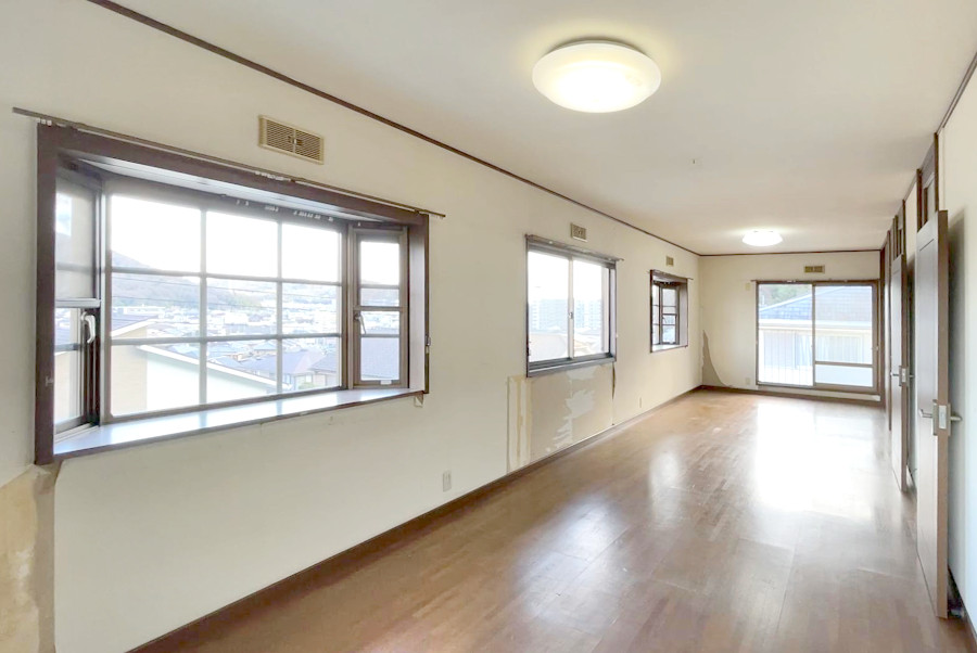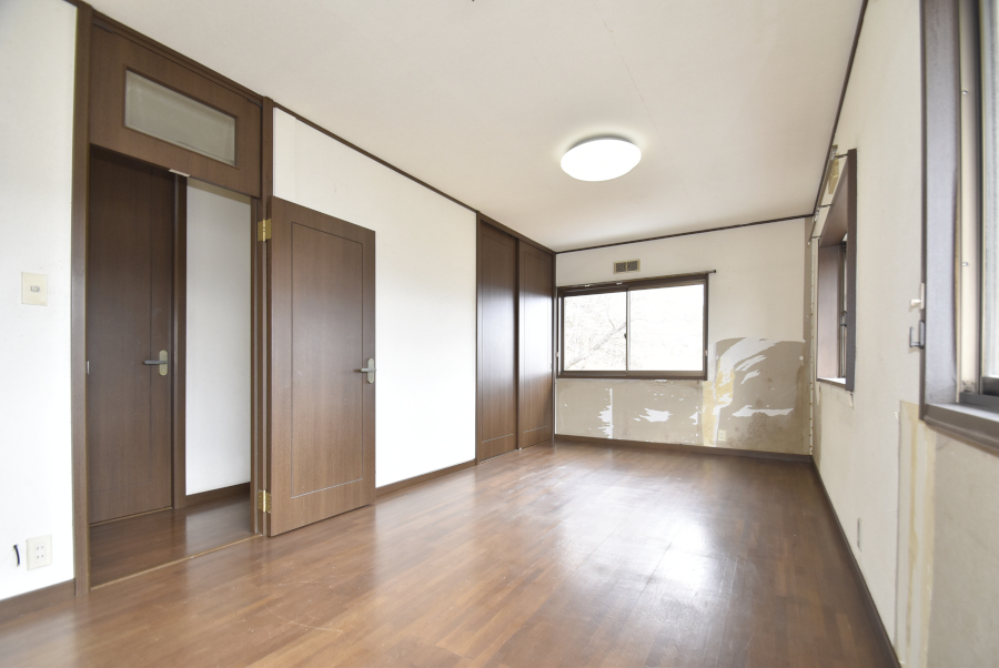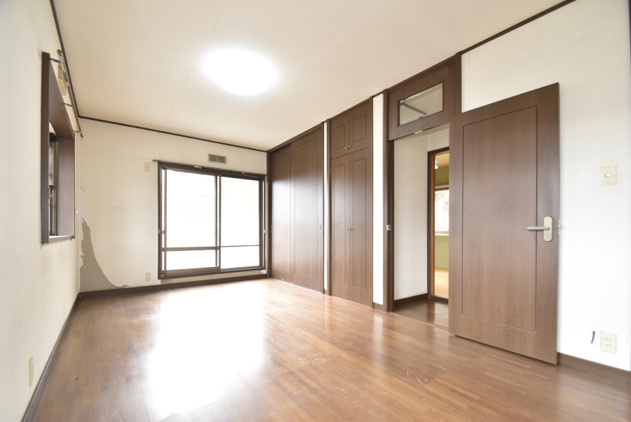 東側の洋室15畳は南北に長いゆとりあるお部屋です。両側に収納があり、扉も2つ付いていますので、用途に合わせて空間を分けて使うこともできますよ。お部屋の窓から周辺の景色を楽しめる見晴らしの良さも魅力です。南向きのベランダもついていますよ。