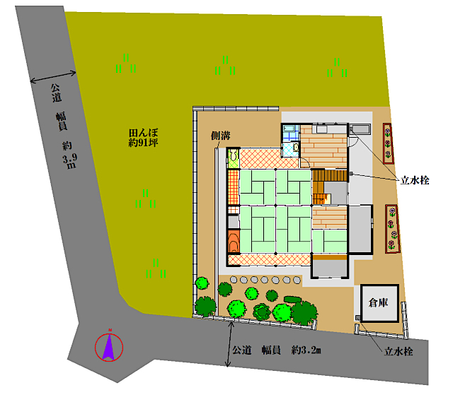 お家の西側と北側には約91坪の田んぼがあります。季節の野菜や果樹などを作って、美味しくいただいてみませんか♪