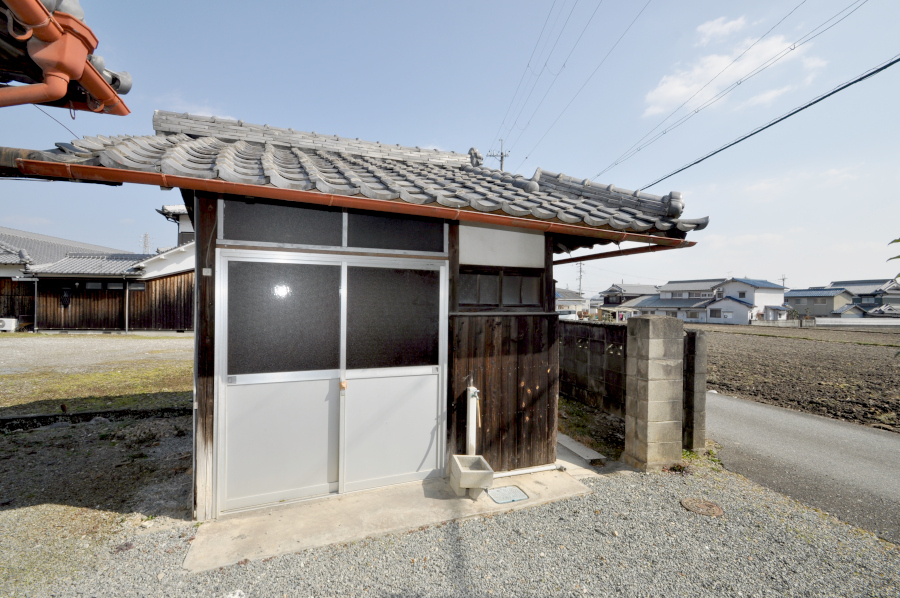 お家の東側には、外部から使える納屋があります。農機具やガーデニングの道具を収納するのにいいですよ。