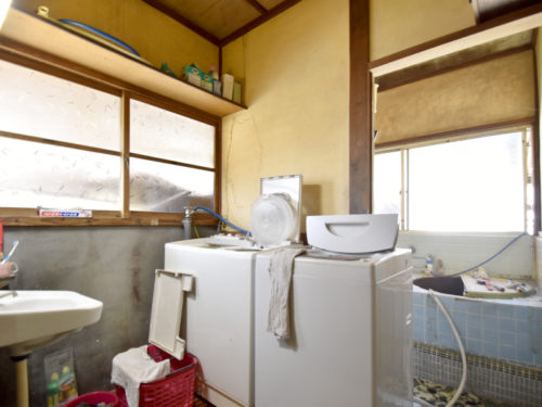 南側の建物は5Kの間取りです。浴室には五右衛門風呂が残っており、昔ながらの趣が感じられます。古民家の雰囲気を楽しみたい方には魅力的なポイントです。
