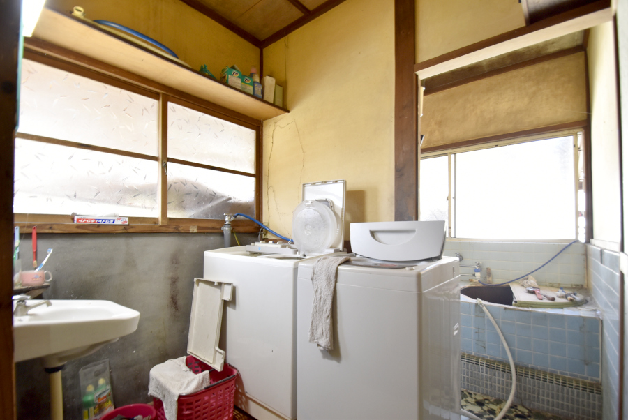 南側の建物は5Kの間取りです。浴室には五右衛門風呂が残っており、昔ながらの趣が感じられます。古民家の雰囲気を楽しみたい方には魅力的なポイントです。