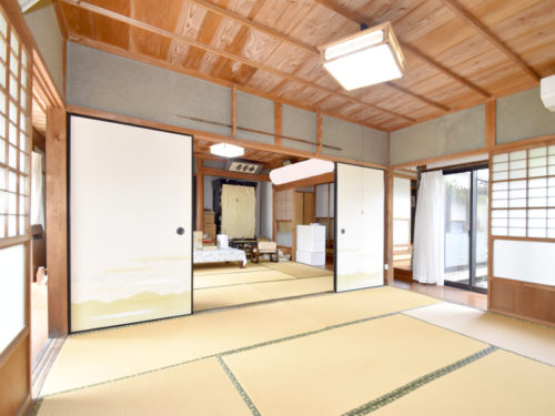 玄関を上がり左手の続き間は6畳と8畳で、南側には縁側があり日当たり良好です。