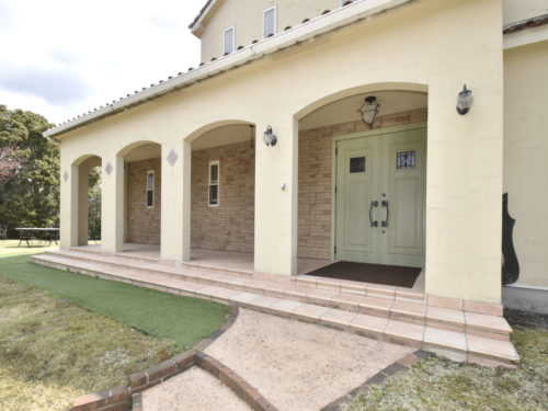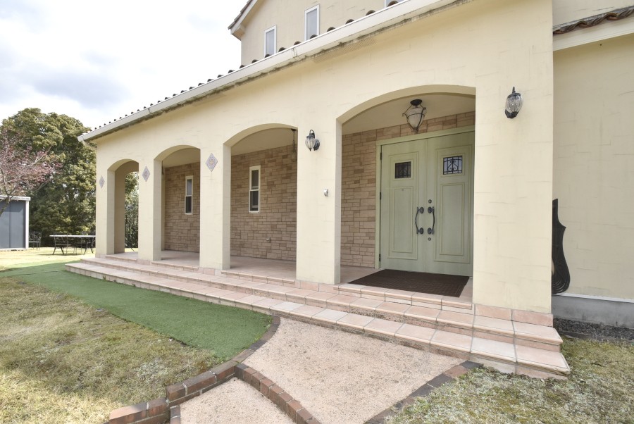 玄関がある北側にはアーチが印象的なポーチテラス、東側には芝生のお庭が広がっています!お子さんやワンちゃんものびのびと過ごせますよ☆