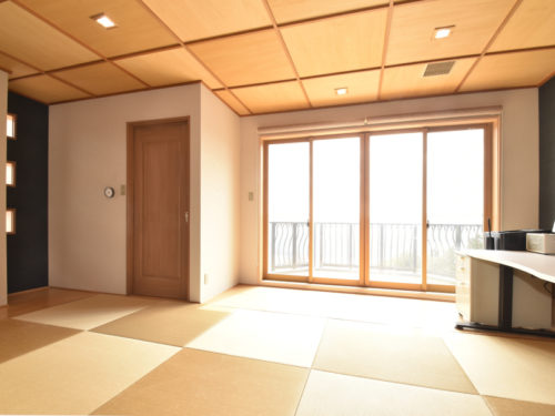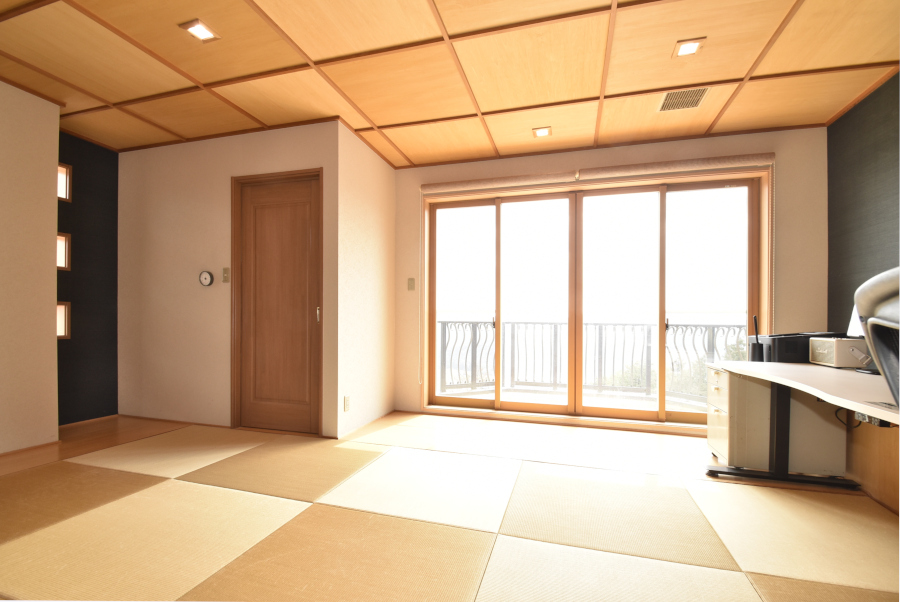 和室15畳は畳と板敷きを組み合わせた落ち着いた空間で、南側にはバルコニーが付いています♪