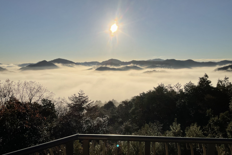 バルコニーからは遠くの山並みまで一望できます!雲海が広がることもある贅沢な眺望です。